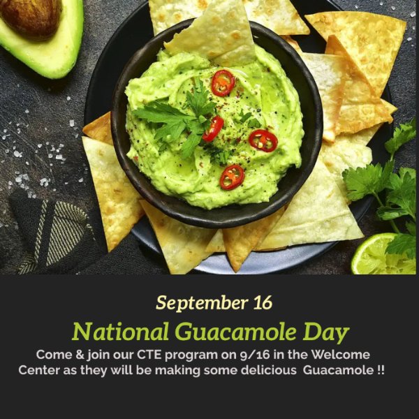 Come & join our CTE program on 9/16 in the Welcome Center as they will be making some delicious Guacamole !!